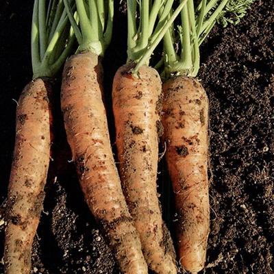 英名carrot、文字どおり発ガン予防作用のあるカロテン(ビタミンA) を多く含む代表的な緑黄色野菜。調理の用途も広く、最近では野菜ジュースの原料としても注目されている。生育適温は15〜20℃と冷涼な気候を好み、生育初期は暑さや寒さに強いが、生長が進むと高温条件で病害が発生しやすくなる。春と秋が生育適期だが、7月まきで11月以降の秋冬どりが温度的に最も栽培しやすい。根の長さで、短根種(長さ15〜20cm) と長根種(長さ60〜70cm)に分けられるが、短根種の方がつくりやすい。栽培期間は100〜120日と割合に長く、株間を10〜12cm として、肥切れしないように育てる。