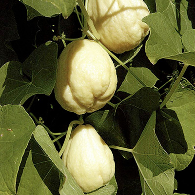 中央アメリカ原産のウリ科の果菜で、霜のない地域では多年草となる。大正時代にアメリカから鹿児島県(薩摩隼人)に導入されたことからハヤトウリ(隼人瓜) と名付けられた。大きな種が入っている果実1個を種としてそのまま植え、5mx5mの棚ならば、あっという間につるで覆いつくされる位、生育は極めて旺盛。高温性で暑さには強いが、寒さには弱く、霜に当たると地上部が枯れる。また、短日条件で着花(果)するので、10月~11月中旬頃が収穫時期。開花後25日位の果実を収穫し、主に味噌漬けや粕漬けなどの漬け物として利用する。