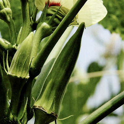 アフリカ原産のオクラは、アオイ科の若いさやを利用する野菜である。原産地のアフリカ~エジプト、また、インドなどの亜熱帝地域では重要な野菜で、暑さに強く真夏でも野菜の中で最も美しいといわれる黄色の花を次々に開花させ、さやをつける。しかし、寒さに弱く10℃以下の低温では生育が停止してしまう。草丈は1〜2mで、吸肥力が強いため元肥が多すぎると草勢が強くなり、着莢不良となる。そのため、土づくりは有機物を多めに施すよう心がける。何といっても「粘り」が人気のポイントである。粘り成分は、ベクチンなどの食物繊維と糖タンパクのムチンの混合物である。