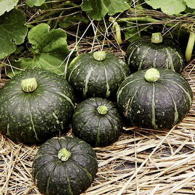 アメリカ大陸原産のカボチャは、カロテンやピタミンCなどを豊富に含む栄養価の高い緑黄色野菜で、日本では西洋カボチャ、日本カボチャ、ペボカボチャの3種が栽培されている。主流は西洋カボチャで、果肉が粉質でほくほくとして甘味が強く、栗カボチャとも呼ばれる。日本カポチャは果肉が粘質でねっとりした風味があり、ペポカボチャは果実の形や食味の風変わりなおもしろいものが多い。カボチャは果菜の中では最も強健で、土嬢適応性も広く旺盛に育ち、病虫害も比較的少なく家庭菜園では無農薬栽培も十分に可能である。1株でかなり広い面積を取ってしまが、垣根に這わせたり、日除け代わりに棚づくりにするなど、立体的な栽培も楽しめる。施肥では、窒素過多になると「つるぽけ」を起こし落果の原因となるので注意。
