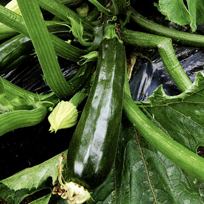 別名つるなしカボチャ、つるが伸ぴず、葉腋に連続して雌花と雄花を着生する。開花後4~10日程度の未熟果(長さ20cm、果重150~200g) を利用するが、外見はキュウリ、食感はナスに似ている。一般家庭でも油炒め、スープなどに利用され、また、生育適温は10~23℃といわれ、低温にも強く栽培しやすいため、全国的に栽培が広がっている。栄養的にはカロテンが豊富で、特にカボチャの仲間ではデンプンが少ないため低カロリーのヘルシー野菜として人気が高まっている。ズッキーニ(zuccini) の名は、イタリア語のカボチャを意味する「zucca」から由米する。